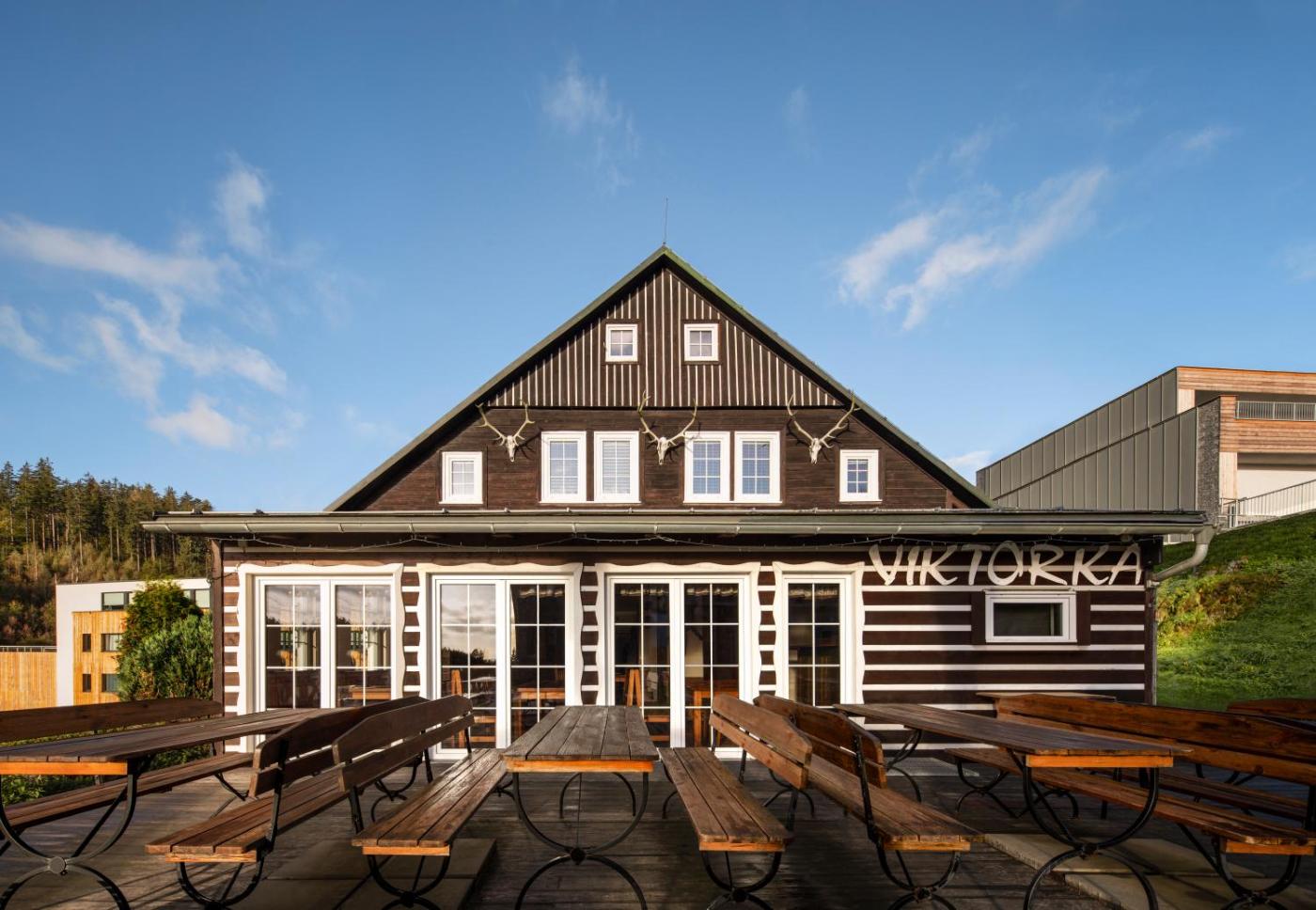 Situated within 23 km of Bus Stop Strážné and 38 km of The Grandmothers Valley in Janske Lazne, Chata VIKTORKA, Černá hora features accommodation with seating area. There is an in-house restaurant, plus free private parking and free WiFi are available. Boasting family rooms, this property also provides guests with a sun terrace.